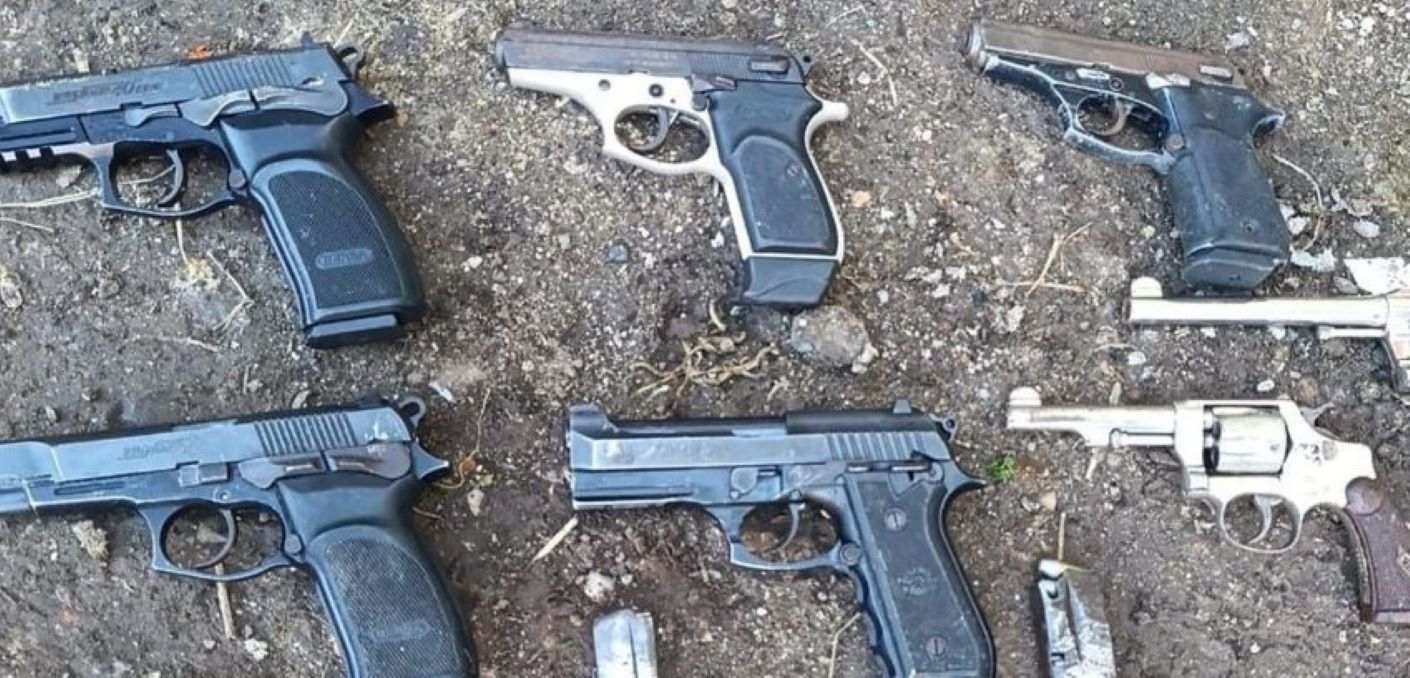 Al llegar al lugar, personal del Comando Radioeléctrico divisó a Domingo Omar R., excavando la tierra del patio. Al inspeccionar, los agentes hallaron en el suelo dos pistolas calibre 9, dos calibre 380, una calibre 40, un revólver calibre 38 largo y otro corto.