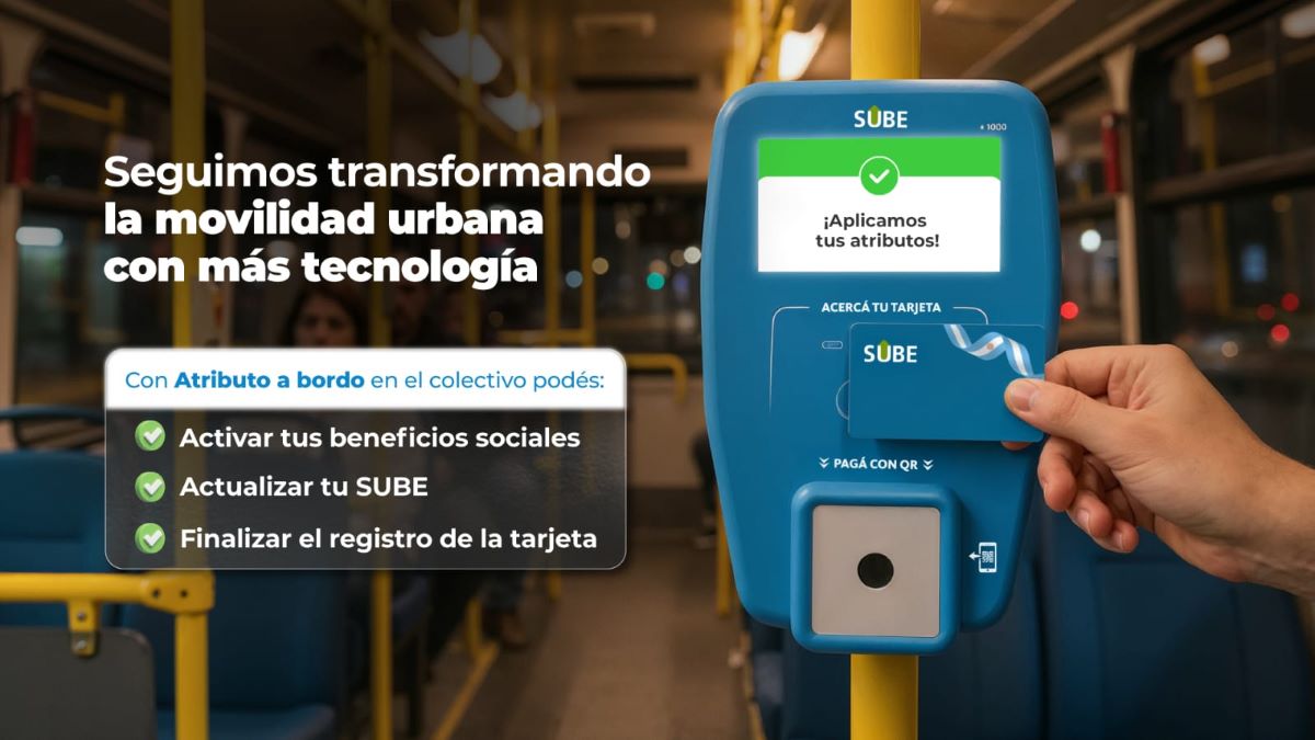 Este es un nuevo paso hacia la mejora de la experiencia de viaje, ya que el sistema SUBE continúa extendiendo a más localidades Atributo a Bordo, una herramienta que simplifica el servicio, al eliminar la necesidad de acudir presencialmente hasta una Terminal Automática.