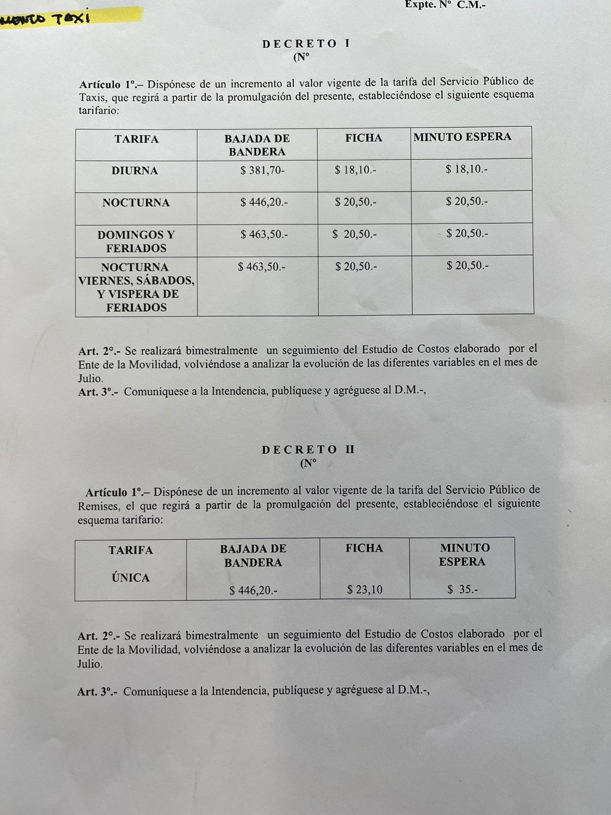 Los concejales dispusieron que la bajada de bandera de los remises salga $446,20, mientras que la ficha llegará a los $23,10. El minuto de espera valdrá 35 pesos.