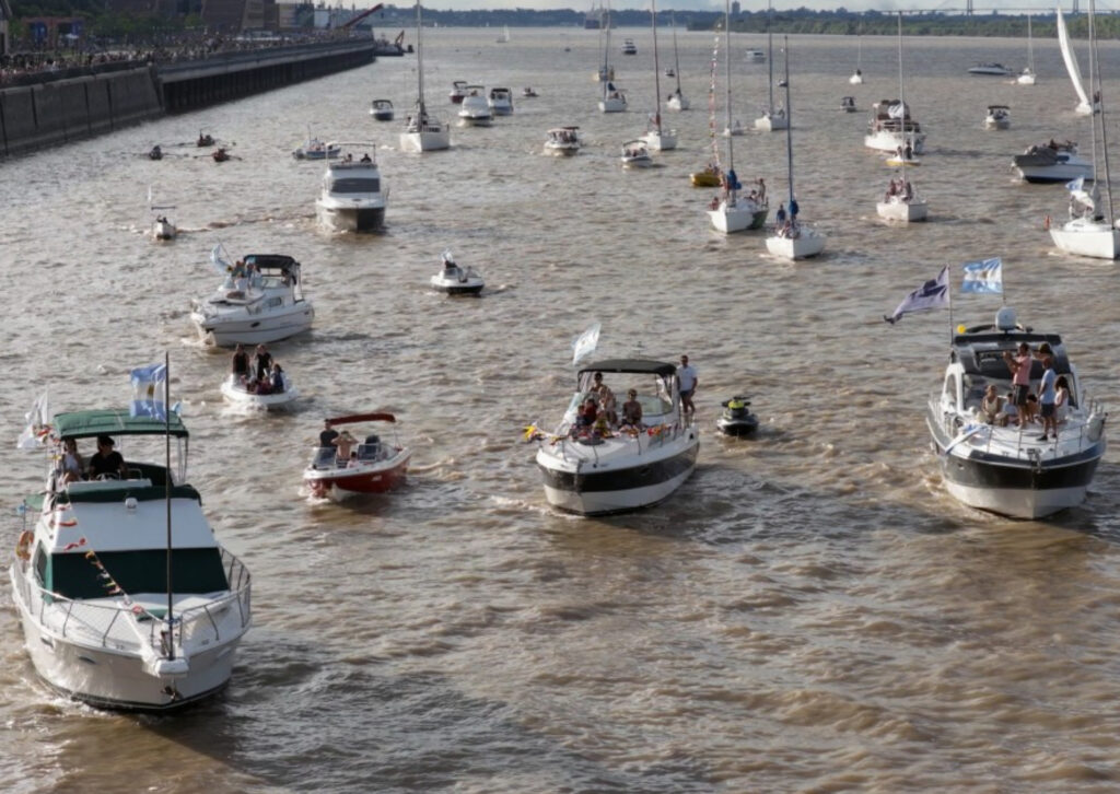 La travesía comenzó en la Rambla Catalunya y recorrió el río Paraná hasta la zona central de la costanera, donde el público aguardó el arribo de lanchas, veleros, yates y botes que participaron del recorrido.