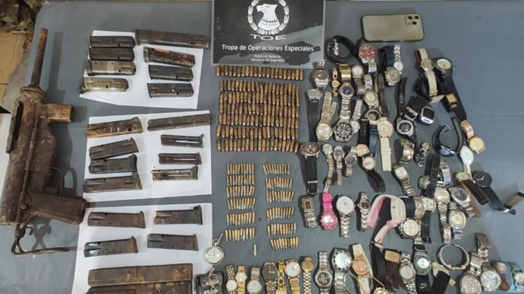 El procedimiento permitió recuperar joyas y electrónicos, e incautar un arsenal que incluía una ametralladora y numerosos cargadores.