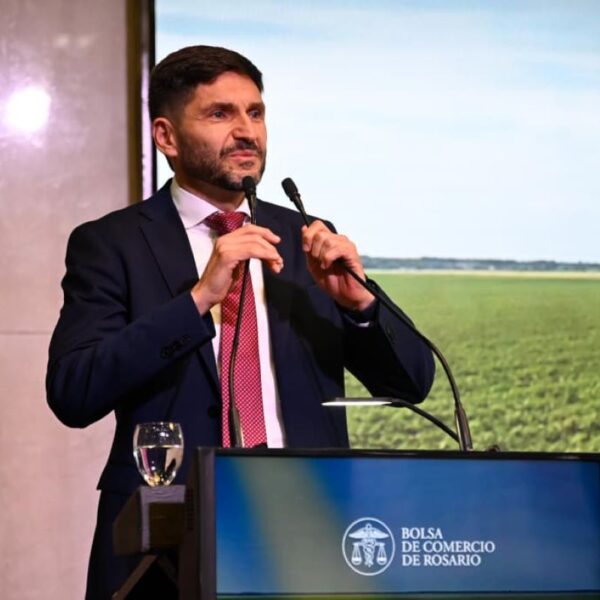 El gobernador participó del remate del primer lote de soja de la campaña 2025/26 en la Bolsa de Comercio.