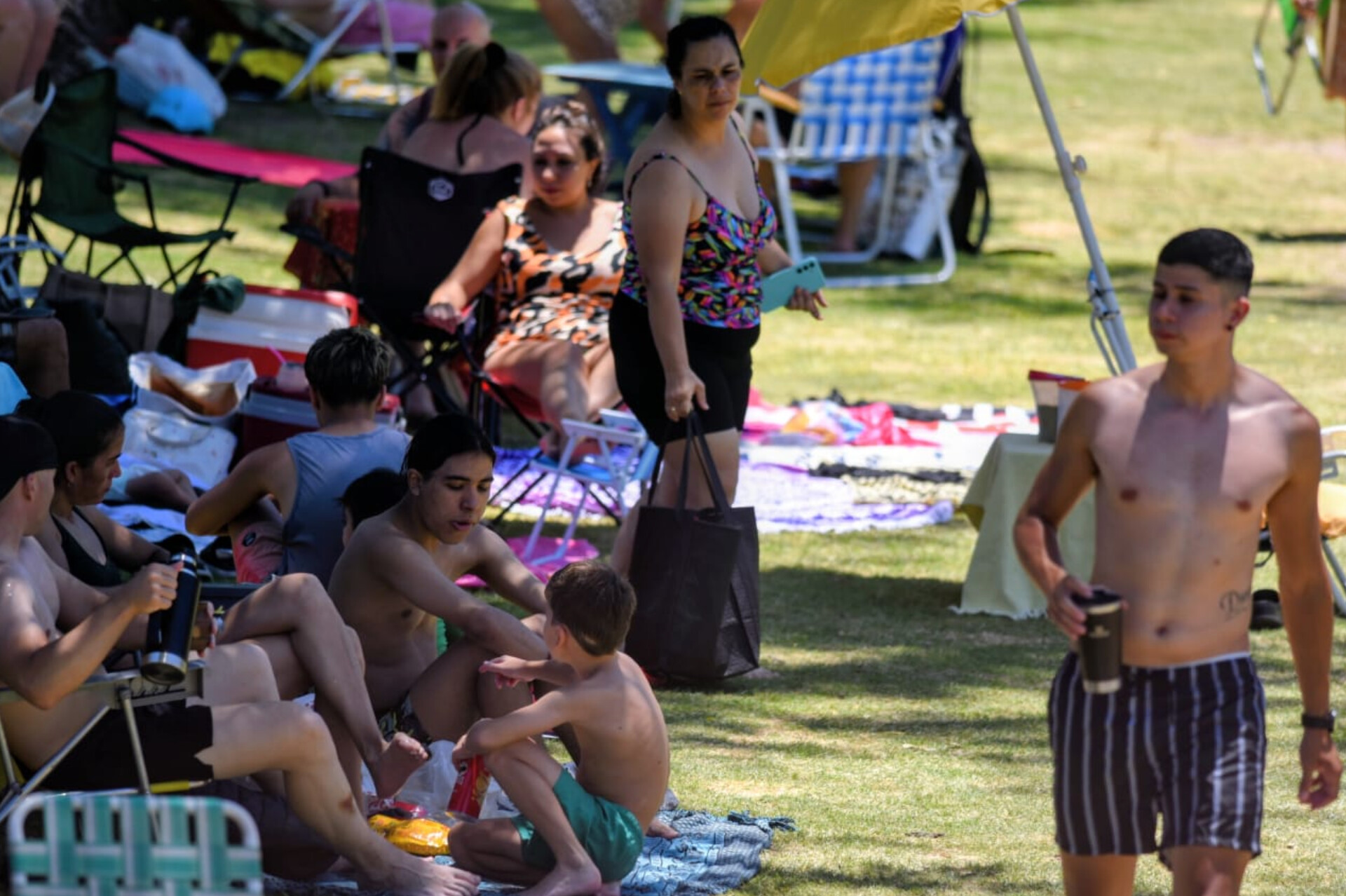 Las imágenes registradas por el fotoperiodista de VersiónRosario, Juan José García, muestran escenas típicas del verano: reposeras, sombrillas, conservadoras y personas disfrutando tanto del agua como de los espacios verdes. Algunos optaron por meterse a la pileta, mientras que otros eligieron descansar bajo la sombra para escapar del sol.