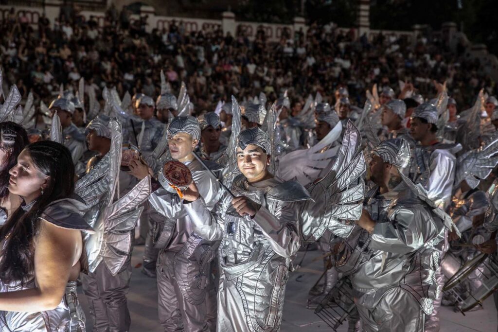 El honor de abrir la pista fue para Herederos, los campeones de 2025. Su entrada fue un verdadero bautismo de la pista: un sonido electrónico y disruptivo que jugaba con las percusiones más clásicas. Desde el barrio Molino Blanco, más de 150 integrantes lucieron trajes que simulaban lenguas de fuego y rindieron homenaje a los ancestros al grito de su himno: “Herederos, sos mi vida”.