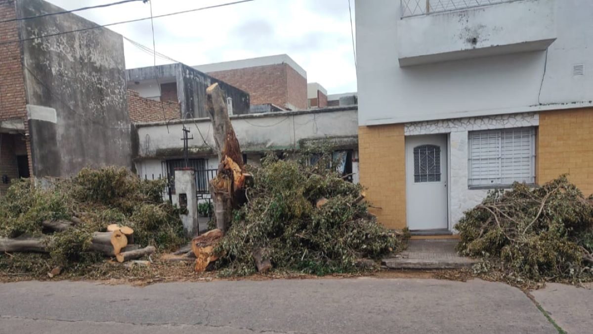 El ejemplar se derrumbó en el ingreso de un domicilio de pasaje Valdés al 1350. Si bien aclararon que el 103 vino a cortar las ramas y el tronco, los restos del árbol quedaron en el mismo lo que complicó el día a día de los habitantes del domicilio.