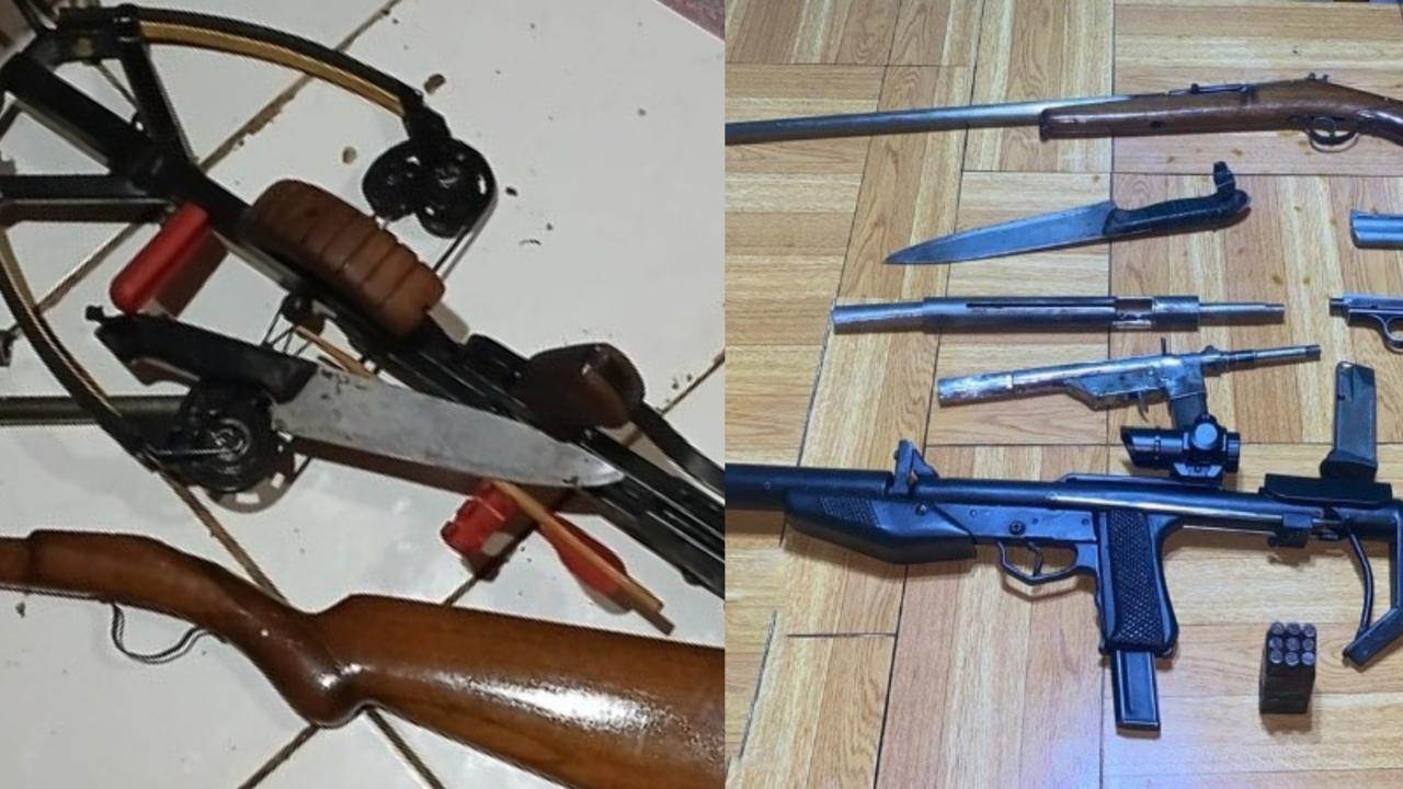 El secuestro contabilizó: una pistola ametralladora con silenciador, una pistola calibre 22, una caravina calibre 22, un revólver calibre 32, una ballesta, una arma de fabricación casera, una escopeta calibre 16, un cuchillo de cocina y varios municiones de distinto calibre.