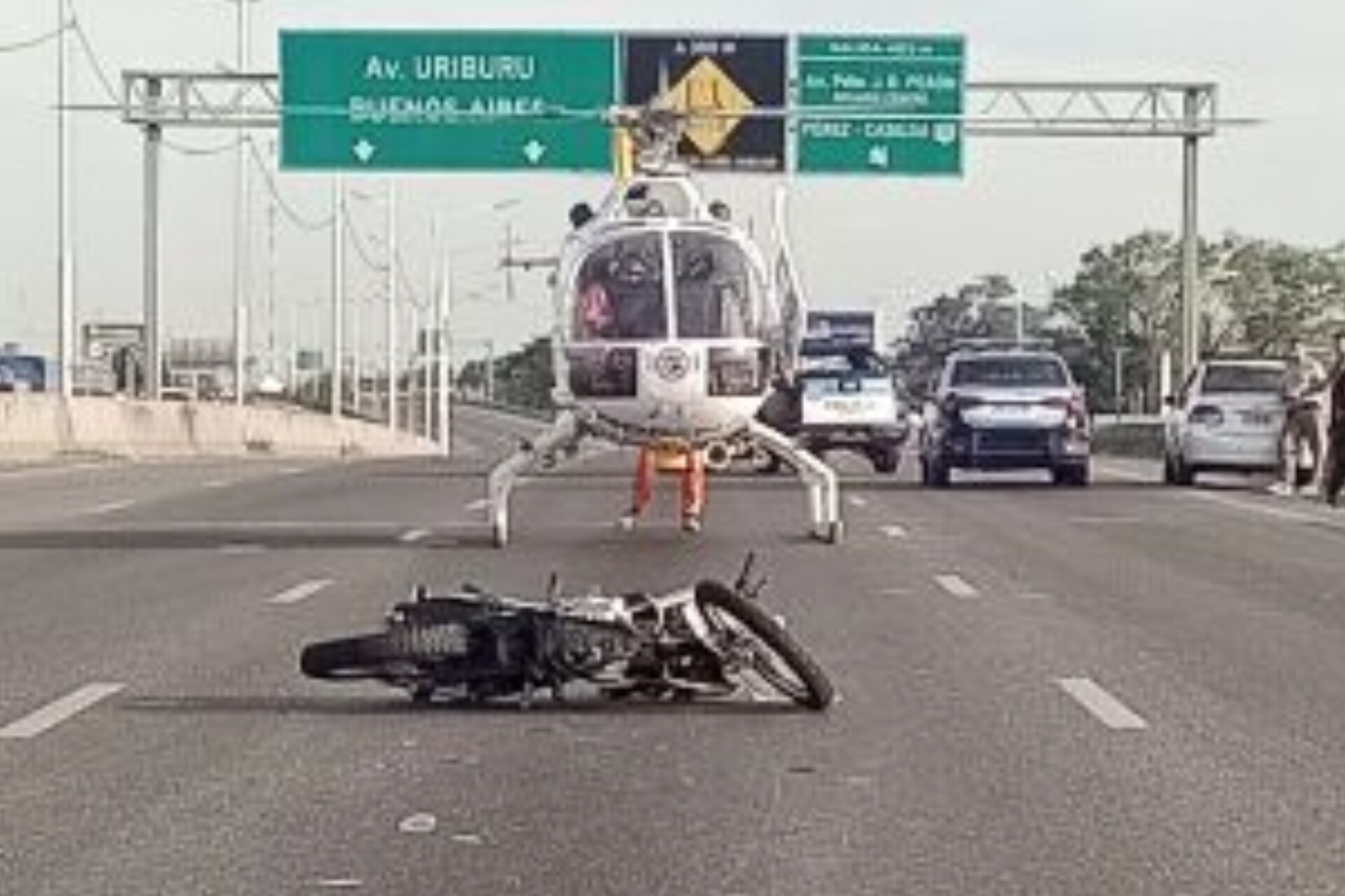 Un fuerte siniestro vial se registró este jueves por la tarde en avenida Circunvalación, a la altura de 27 de Febrero, en la mano que va hacia el sur. Un auto impactó contra una moto y el conductor del rodado menor tuvo que ser trasladado en helicóptero sanitario.