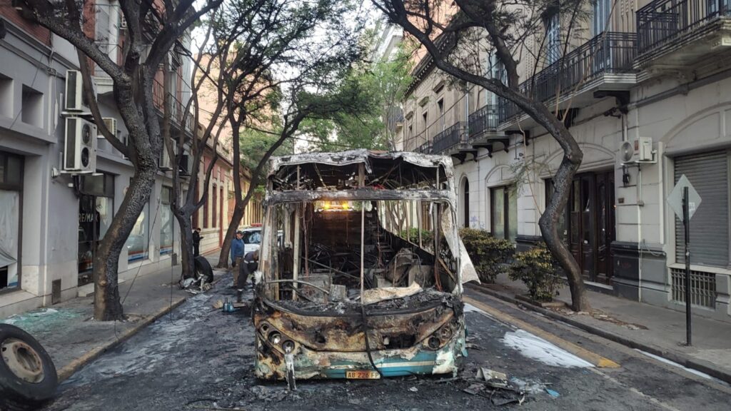 Un impresionante incendio se desató este lunes en la madrugada cuando un colectivo de la línea 120 comenzó a prenderse fuego mientras transitaba por la esquina de Salta y Corrientes. Afortunadamente, en ese momento solo se encontraban a bordo la conductora y un pasajero, quienes lograron descender sin sufrir heridas.