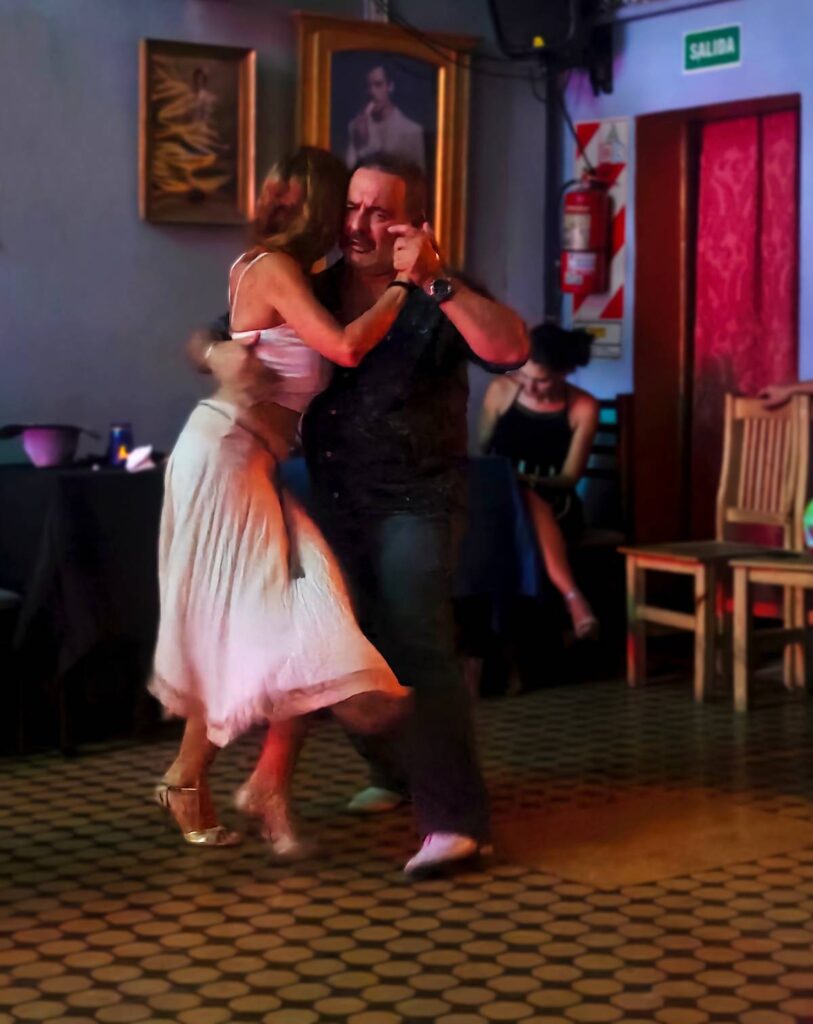 Virginia Muñoz Messineo y Alcides Cloux son los organizadores. “La decoración no tiene nada que ver, pero el lugar tiene olor a tango”, dice ella. Después de inaugurar se enteraron que ahí funcionó una de las primeras milongas de los noventa: “Muchos de los que están bailando ahora dieron sus primeros pasos acá. Eso es mágico para nosotros”.