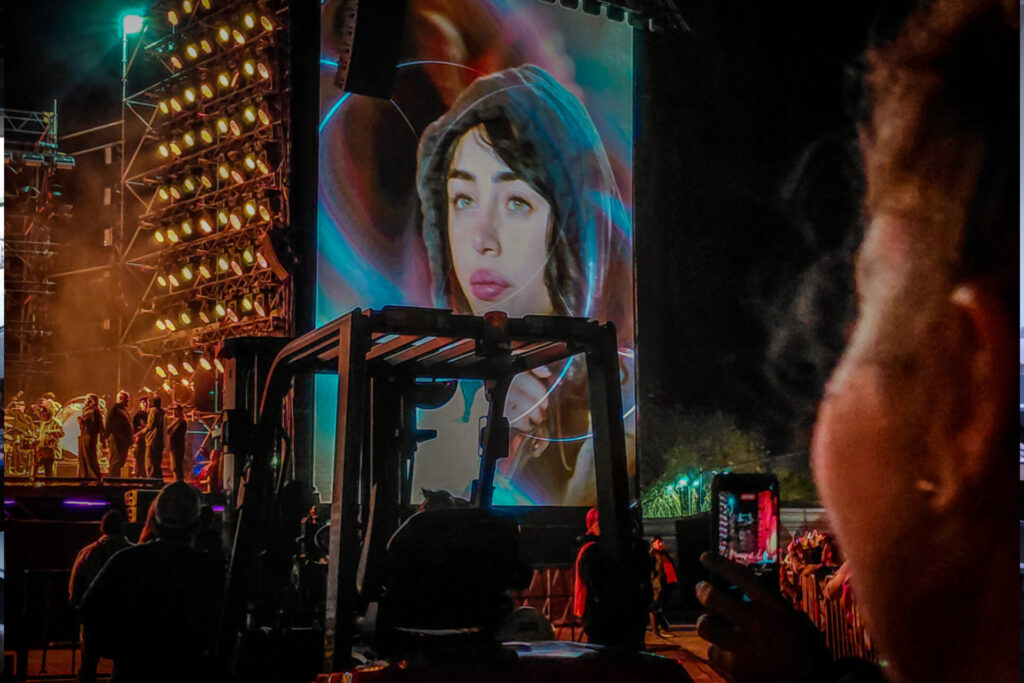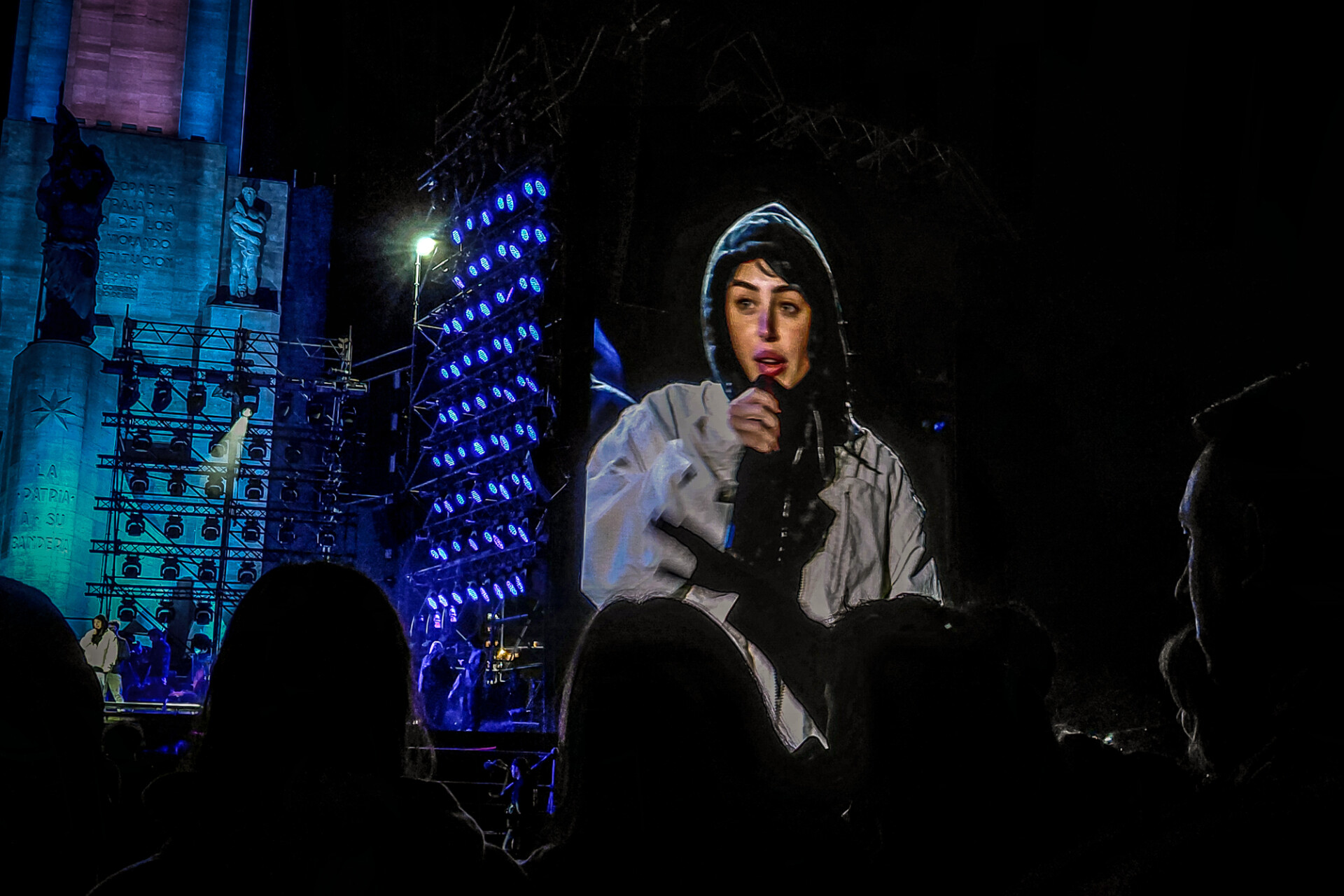 Durante la noche de este viernes, la joven cantante rosarina realizó la prueba de sonido junto a la Banda Sinfónica, interpretando alrededor de cinco canciones que pudieron disfrutarse desde las inmediaciones del lugar. Vecinos y fans que pasaban por allí se detuvieron para escuchar el ensayo y la ovacionaron entre aplausos y gritos de emoción.