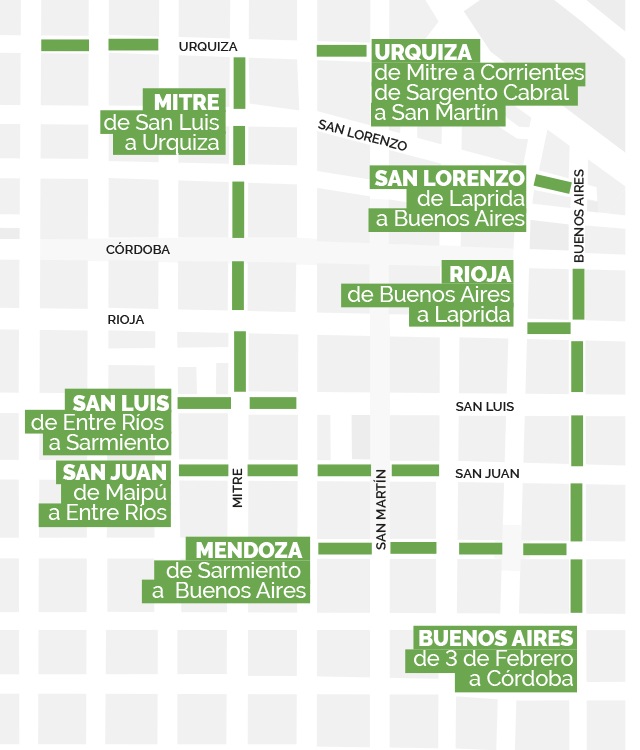 – Urquiza de Mitre a Corrientes y de Sargento Cabral a San Martín