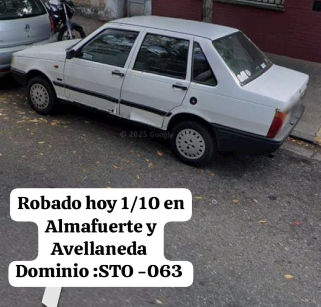 Se trata de un Fiat Duna con patente STO 063, que fue visto por última vez en la zona de Juan B. Justo y Alberdi. La familia dejó el siguiente número de teléfono (341 5457118) para quienes aporten datos del auto robado.