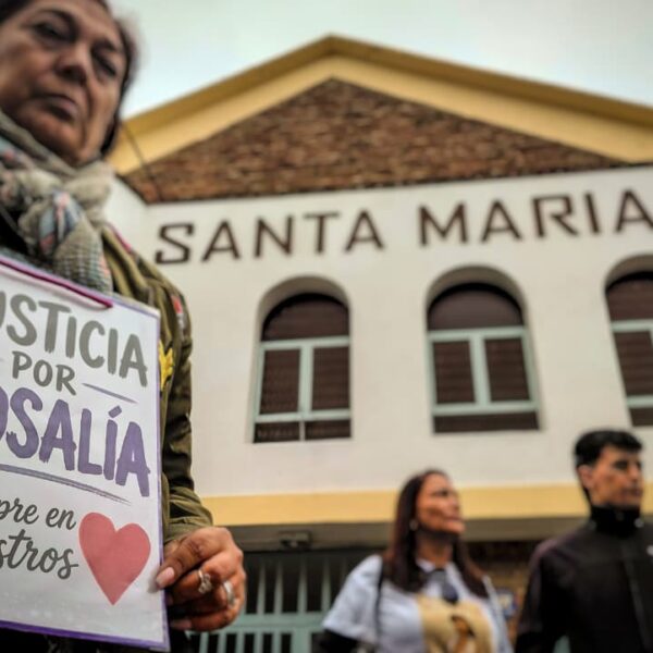 Familiares, amigos y vecinos de la mujer que recibió un disparo de su hijo marcharon para reclamar justicia por el atroz episodio.