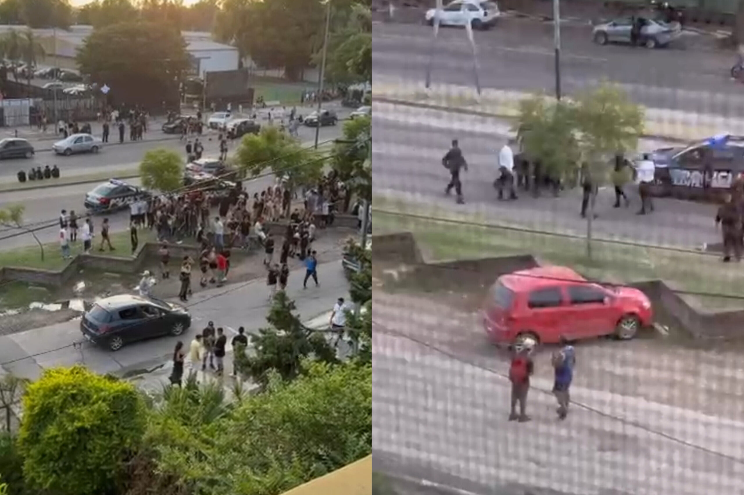 En los videos registrados y difundidos a este medio se observa un operativo policial que terminó con la detención de una persona, mientras otros jóvenes continuaban en las inmediaciones del boliche.