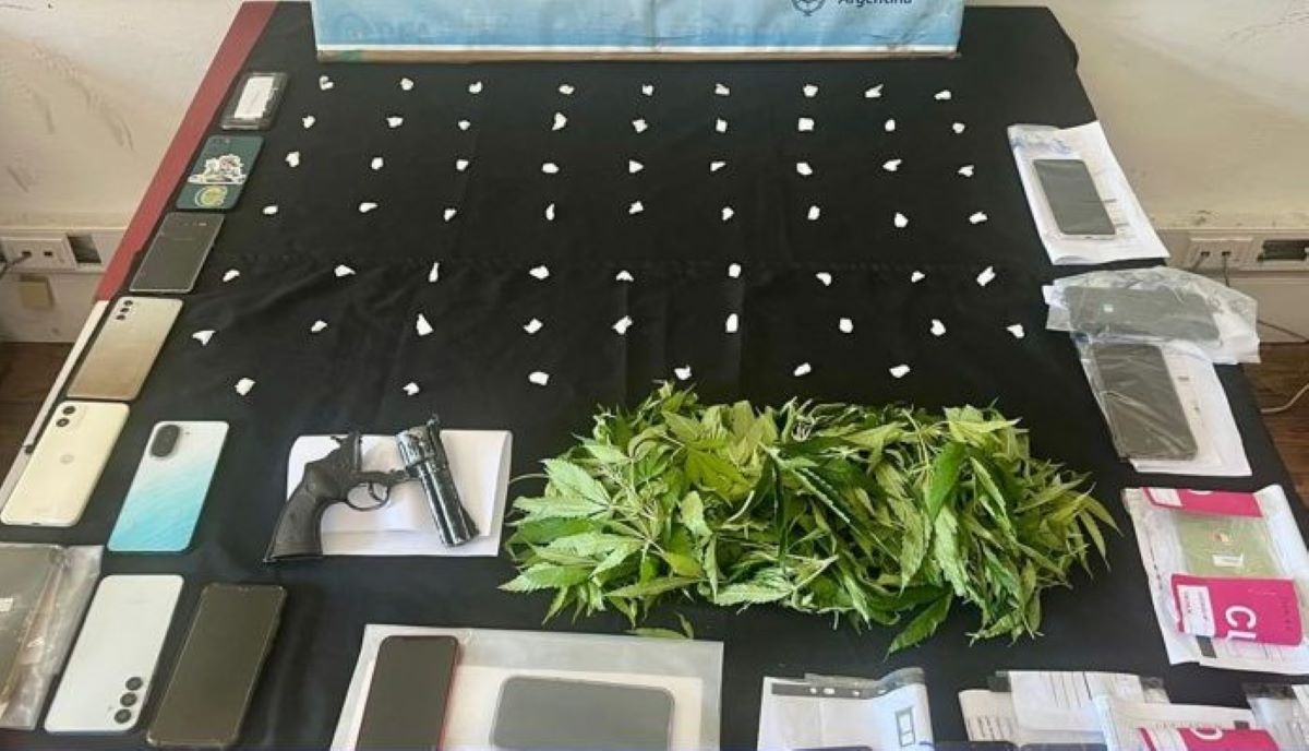 Durante los procedimientos simultáneos, la PFA detuvo a ocho hombres y cuatro mujeres, e identificó a otros 35 individuos. Además, se secuestraron dosis de cocaína y marihuana, 51 celulares, dinero en pesos y moneda extranjera, una réplica de revólver, un DVR, insumos para armado de cigarrillos y documentación relevante.