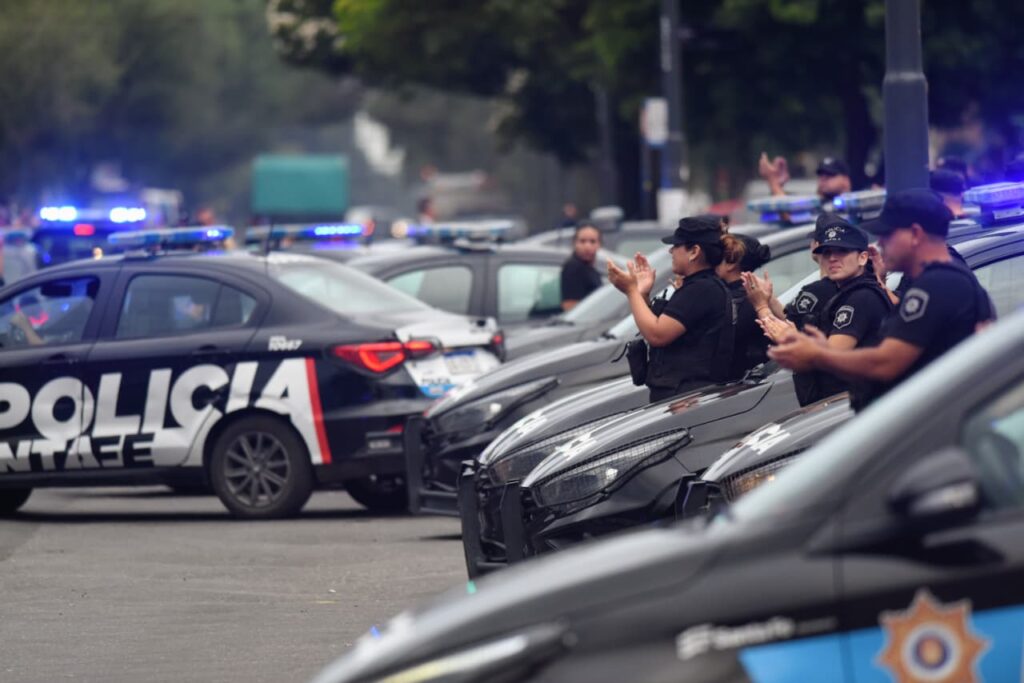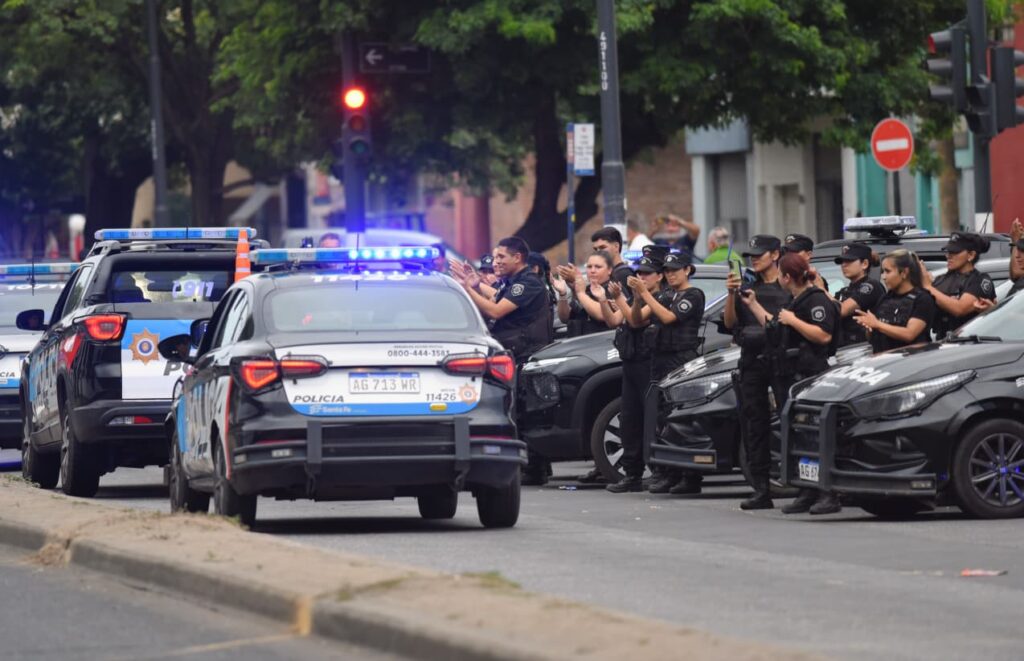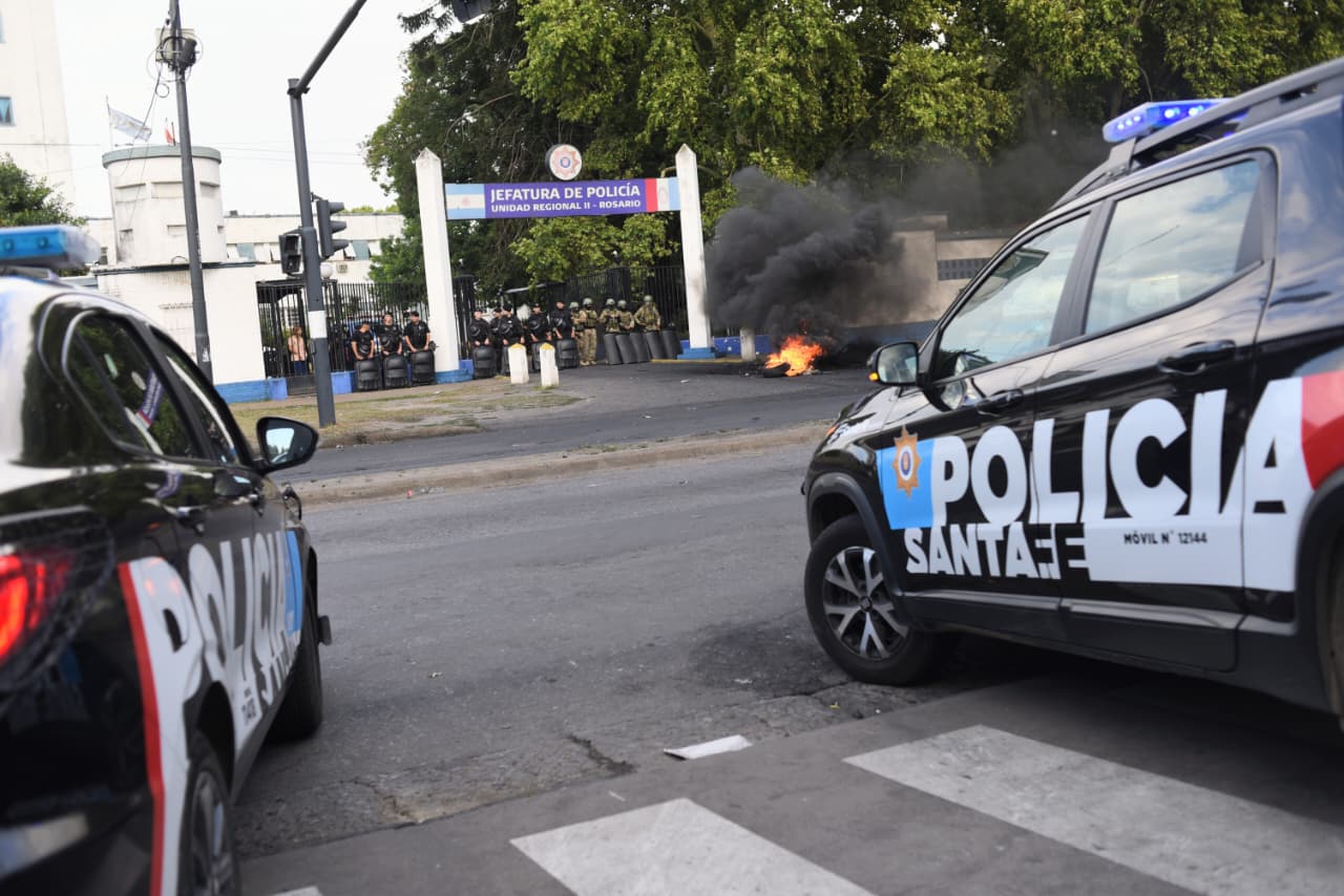 La Jefatura es el epicentro de los reclamos de decenas de uniformados que piden mejoras laborales y un sueldo acorde al valor de la canasta básica, que en Rosario promedia el $1.800.000. Como señal de descontento, las sirenas de unos 60 patrulleros, varias camionetas y motos no dejan de sonar.