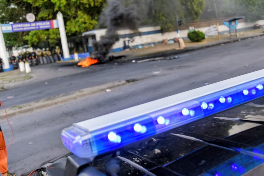 El agravio se produjo poco después de la conferencia de prensa en la que el ministro de Justicia y Seguridad, Pablo Cococcioni, había instado a los manifestantes para que volvieran a sus puestos luego de suspender los pases a disponibilidad de unos 30 agentes que se habían plegado a la protesta.