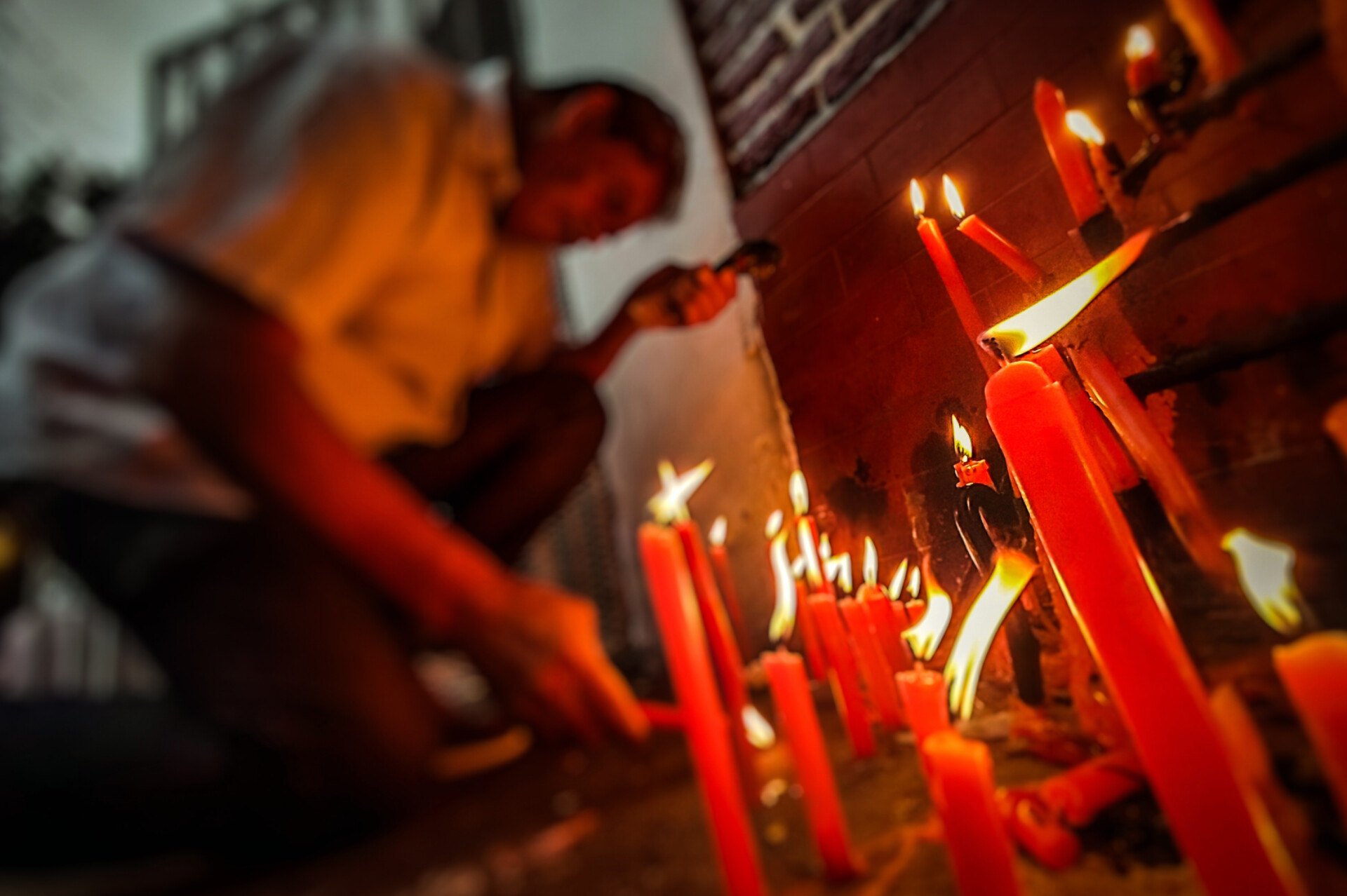 El lugar se llenó de banderas y cintas rojas, velas encendidas y largas filas de personas que llegaron para agradecer promesas cumplidas o pedir protección, salud, trabajo y justicia. La jornada estuvo acompañada por puestos de comida, feriantes y música en vivo, en un clima que combinó devoción y celebración.