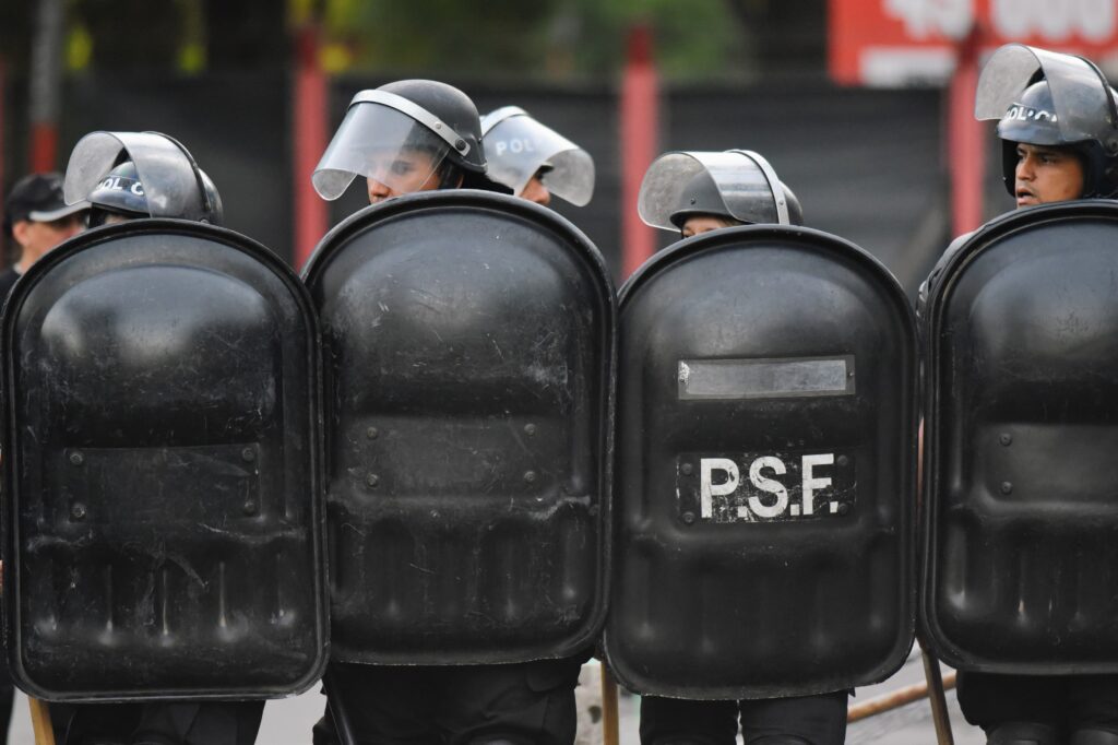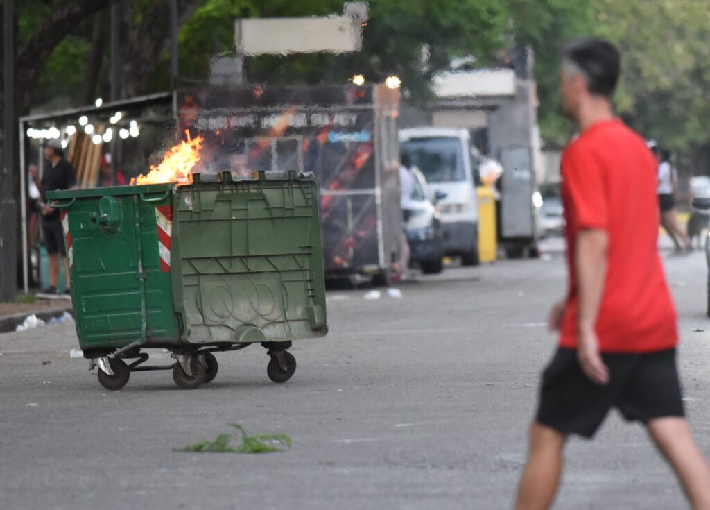 Los disturbios comenzaron con piedrazos contra edificios ubicados en avenida Pellegrini y Rodríguez. Como consecuencia, se registraron vidrios rotos, balcones dañados y otros destrozos. Ante la escalada, las fuerzas de seguridad respondieron con balas de goma y gases lacrimógenos para dispersar a los manifestantes.