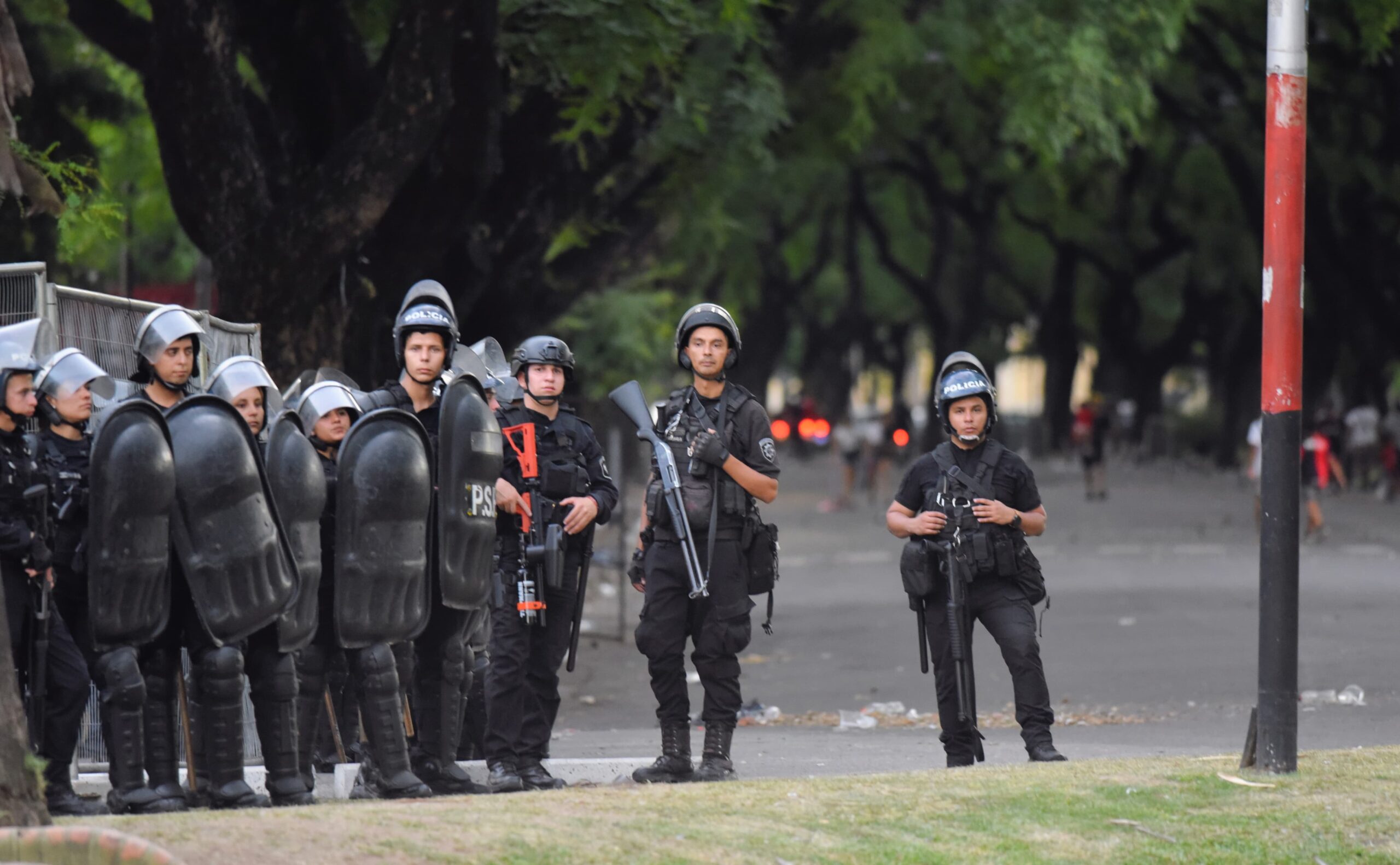 En el playón donde debía salir el plantel y la dirigencia había un fuerte operativo policial. Aun así, se vivieron momentos de tensión, con personas intentando ingresar por la fuerza al sector de conferencias de prensa. Además de los daños materiales, muchos simpatizantes expresaron su enojo con cánticos contra los jugadores y las autoridades del club.