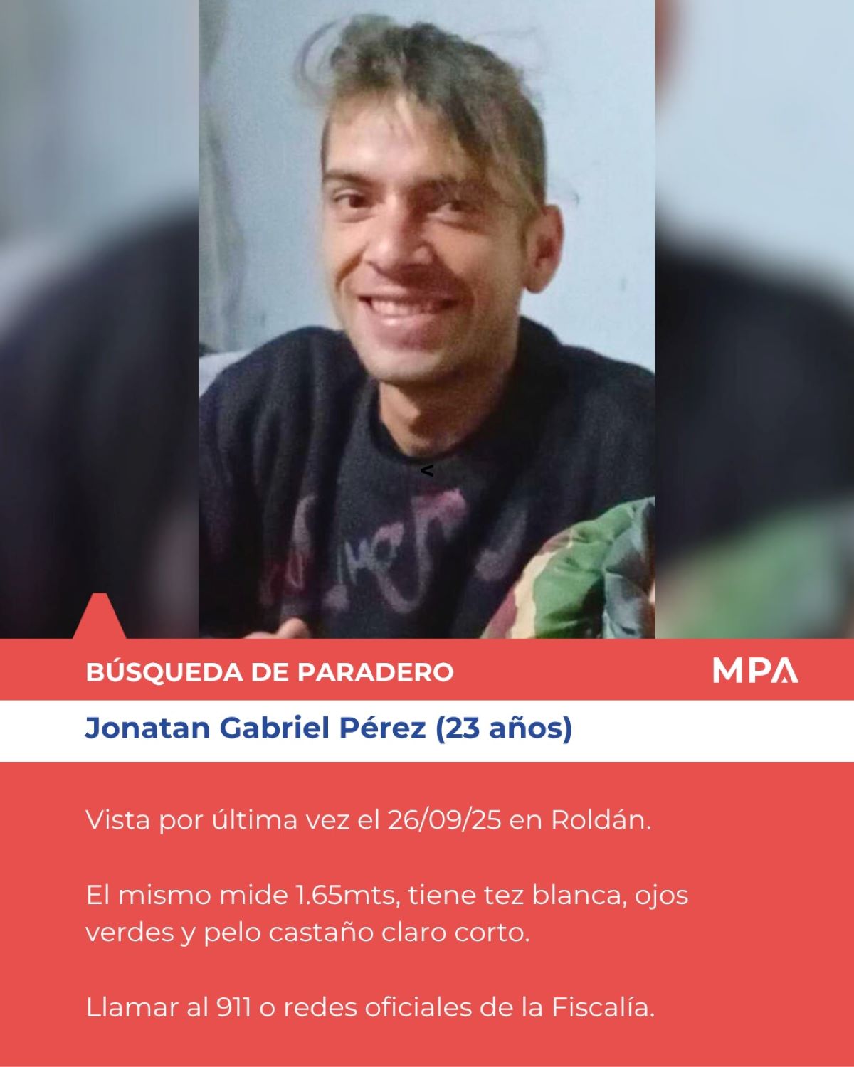 Jonatan Gabriel Pérez, de 23 años, había salido de su casa en Roldán aquella noche, alrededor de las 20.30, con la intención de ir a la casa de su ex pareja, madre de su hijo. Desde entonces, no se supo más nada de él, y su desaparición fue motivo de intensa búsqueda por parte de las autoridades y la comunidad.