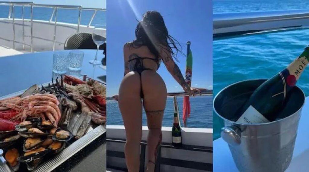 Las fotografías del posterior escándalo mostraban una embarcación de lujo, copas de champagne, bolsos y un reloj de marca y el mar en el horizonte de Marbella, todo difundido en la cuenta de Instagram de la modelo Sofia Clérici.