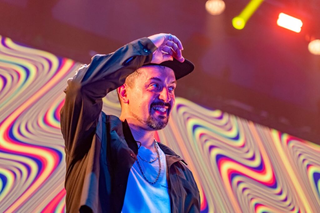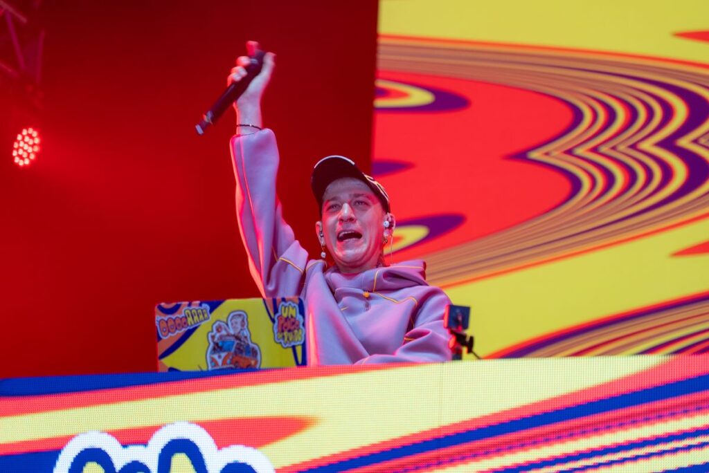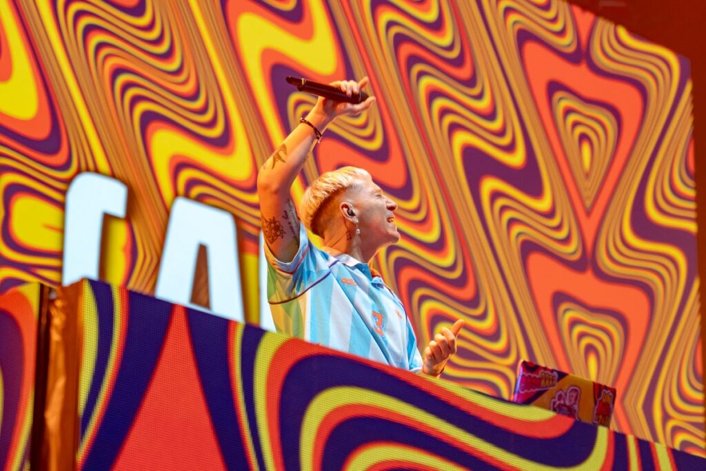 Además, invitaron al escenario a Joaquín, el percusionista rosarino que se hizo viral el mes pasado por tocar sobre el techo de una gomería en Empalme Graneros.