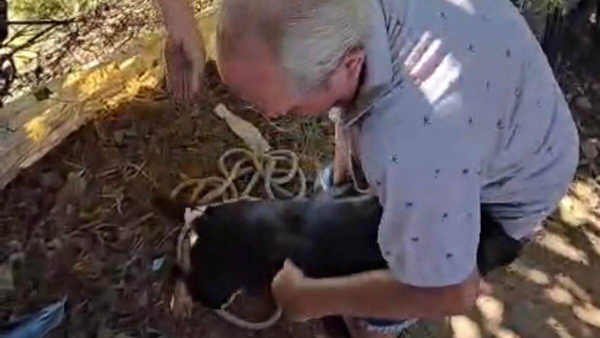 El hecho fue denunciado por Leonardo Freguenel, de 72 años, quien alerto al 911 por una cachorra que en inmediaciones de Los Plátanos al 800 quedó atrapada en una pendiente profunda.