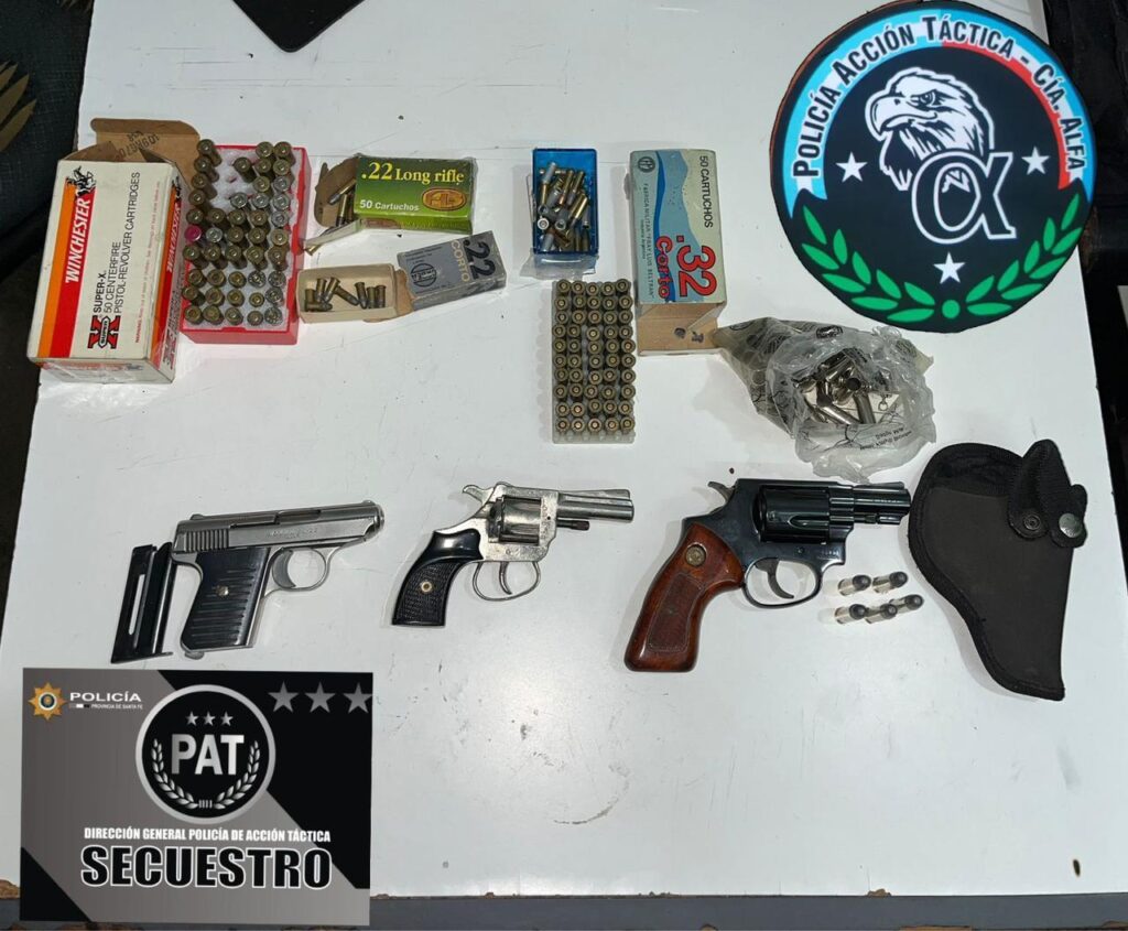 Por otra parte, el jueves 23 de octubre, en Villa Gobernador Gálvez, la Policía de Acción Táctica (PAT) detuvo a un hombre denunciado por amenazas con arma de fuego. En el allanamiento de su vivienda, los agentes secuestraron un revólver calibre .38, otro calibre .22, una pistola calibre .22 y 149 cartuchos de distintos calibres, además de vainas servidas.
